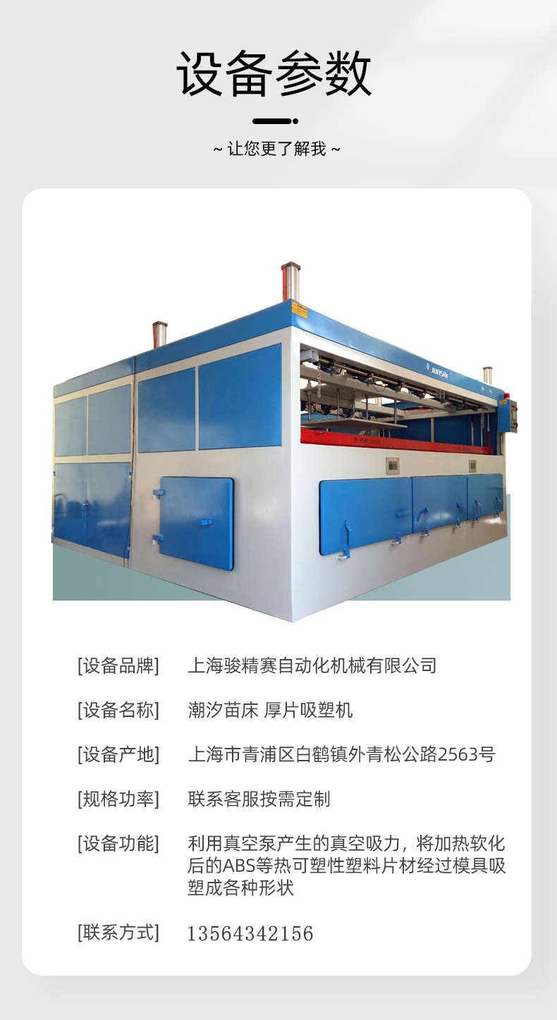 相關(guān)推薦 汽車門板內(nèi)飾全自動(dòng)厚片吸塑機(jī) 種植養(yǎng)殖苗床厚片吸塑成型設(shè)備 廠家供應(yīng)咨詢客服可免費(fèi)試樣工藝 潮汐苗床厚片吸塑機(jī) 皮卡車貨箱寶厚片吸塑機(jī)